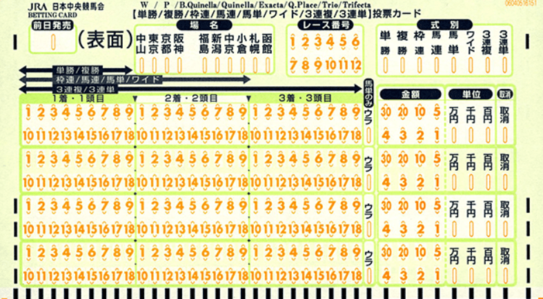競馬場、ウインズなどで馬券を購入する際はマークカードに記入する必要があります。