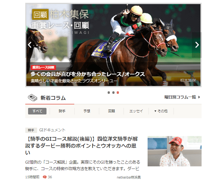 それだけでなく、騎手のコラムや調教師のコラムも多くの情報のラインナップです。
