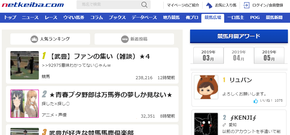 サイト内に、みんなのコラムというページがあり、会員はだれでもコラムをあげることができますが、ブログのようにしっかり記事をかいている人もいれば、2chのスレや口コミみたいに数行のレース予想だけ書いている人もいるので、非常に参考になり、正直面白い人も存在します。