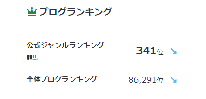 アメーバを利用してブログをやっているようですが、アメーバの全体ランキングでは86291位、競馬ジャンルのブログ341位とあまり人気が無いようですね。
