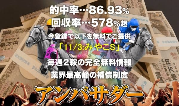 アンバサダーは少点数で高い的中率と回収率を誇る競馬予想サイト